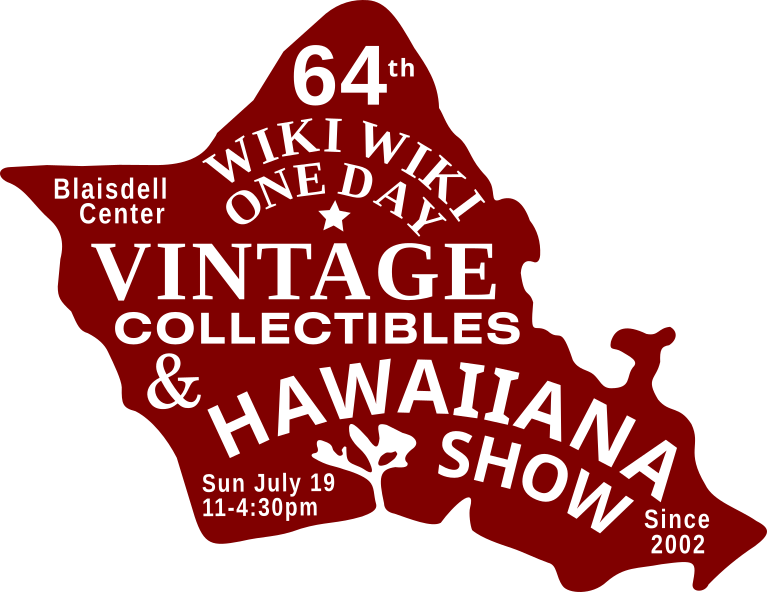 April 10: The next Wiki Wiki Show is on Sunday, July 19. It will be the 64th Wiki Wiki One Day Vintage Collectibles & Hawaiiana Show.