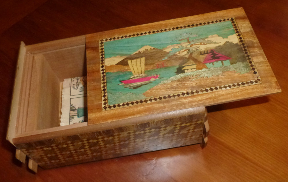 February 19: Found this very complex vintage Japanese puzzle box at a recent sale. It was closed and it took me a while to open it. To my surprise, the only thing inside was a clipping of the newspaper comic strip, "Berry's World."